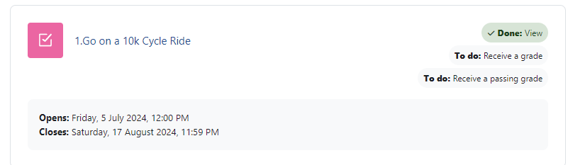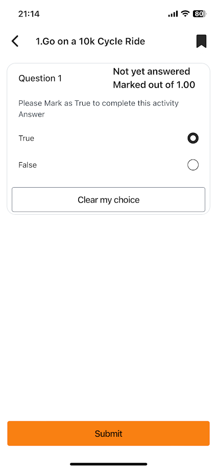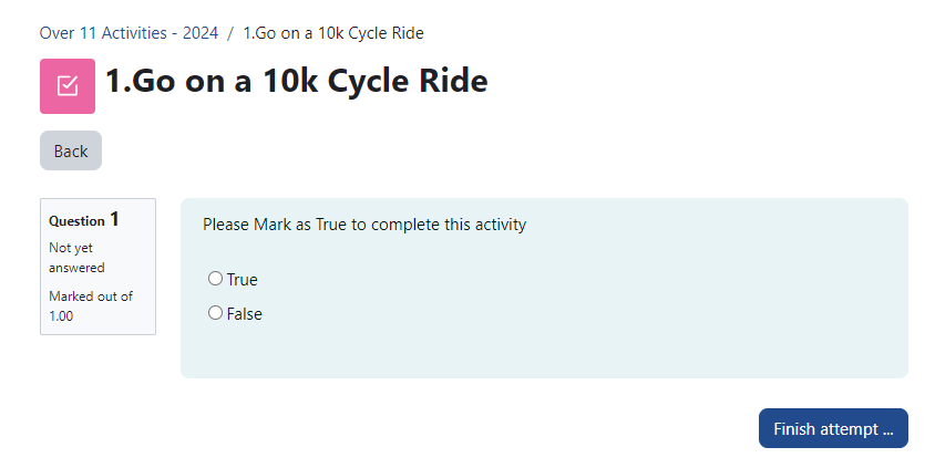 - 3) Select on the activity you want to mark as complete, e.g. “1.Go on a 10k Cycle Ride” and then click on the Attempt Quiz button.