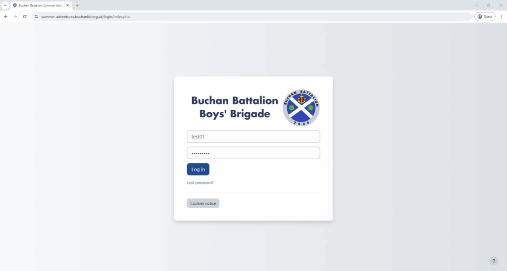 - 1) Head to https://aberdeen.summer-adventures.org.uk/ and login with your username and password, if you have forgotten your password click the “Lost Password?” option or email ross@summer-adventures.org.uk.