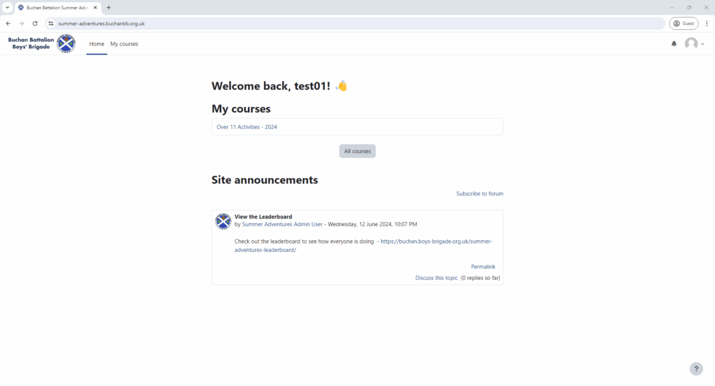 - 4) On the home page, select “My Courses” and then select the activity set, this will either be “Under 11 Activities – 2025” or “Over 11 Activities – 2025”